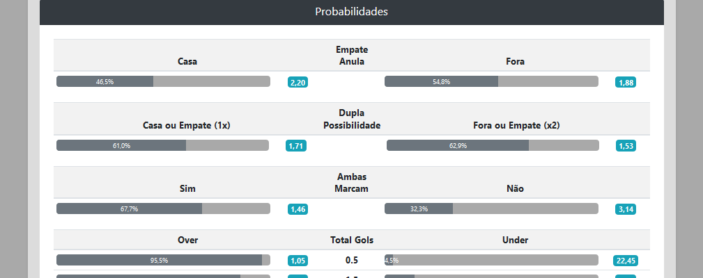 - Existe alguma opção para que eu possa ver quais os jogos com maior probabilidade de Over 0.5, Ambas Marcam?